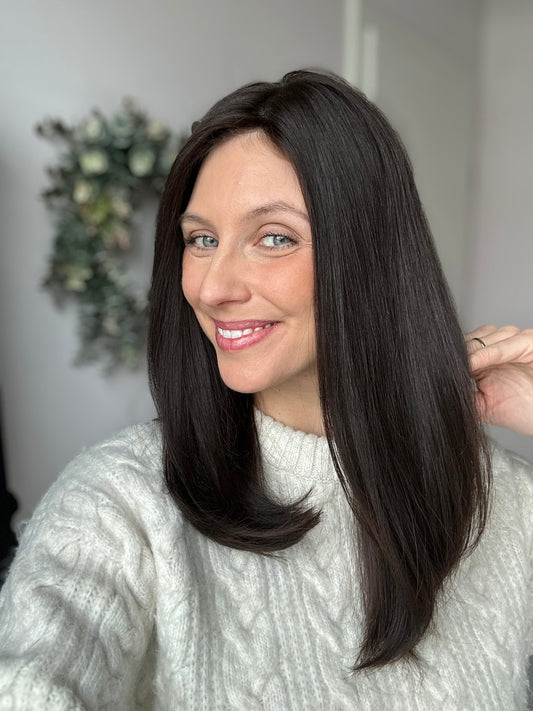 "Ich bin total happy mit meiner Lady und fühle mich wahnsinnig toll damit. Ich habe letztes Jahr durch 2 Mal Corona so viel von meinem sowieso schon dünnen und feinem haar verloren. Ich war ganz verzweifelt, denn ich habe sie hauptsächlich am Deckhaar verloren. Umso glücklicher bin ich über den Topper. Er passt toll zu meinen eigenen Haaren die ich immer zum verblenden nehme, dass ich sofort gut zurecht kam..."