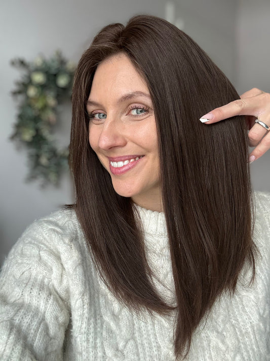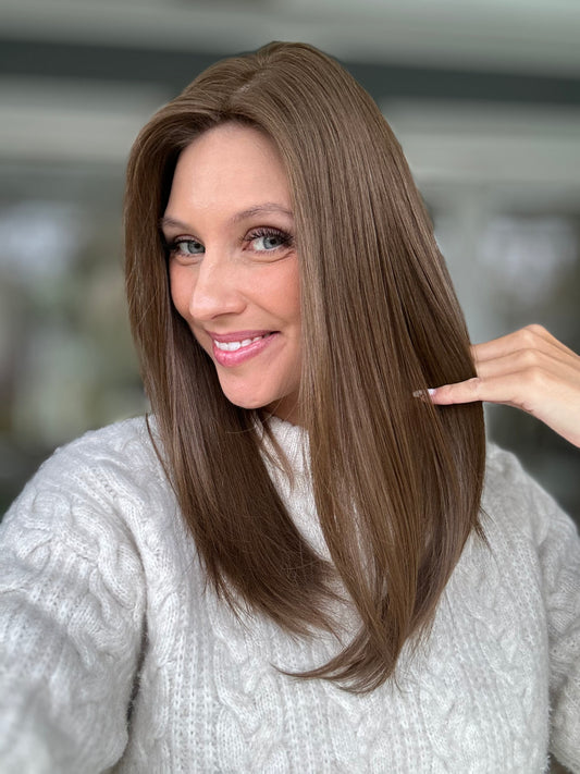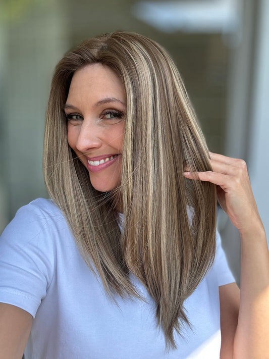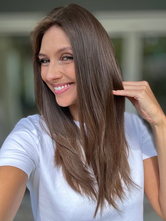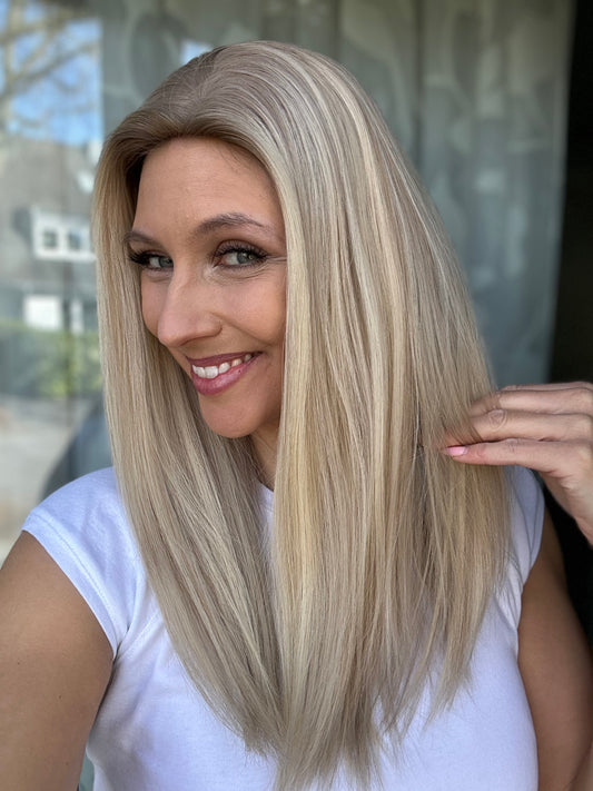Was ist ein Topper? Ein Topper ist die perfekte Kombination aus Extensions und einer Perücke! Ein Topper gibt dir die Echtheit eines richtigen Scheitels, perfektes Cover am Oberkopf und volle glamouröse Längen! Egal ob feines Haar oder Haarausfall, ein Topper ist in 15-47 Sekunden der perfekte Boost für deine Traumhaare!