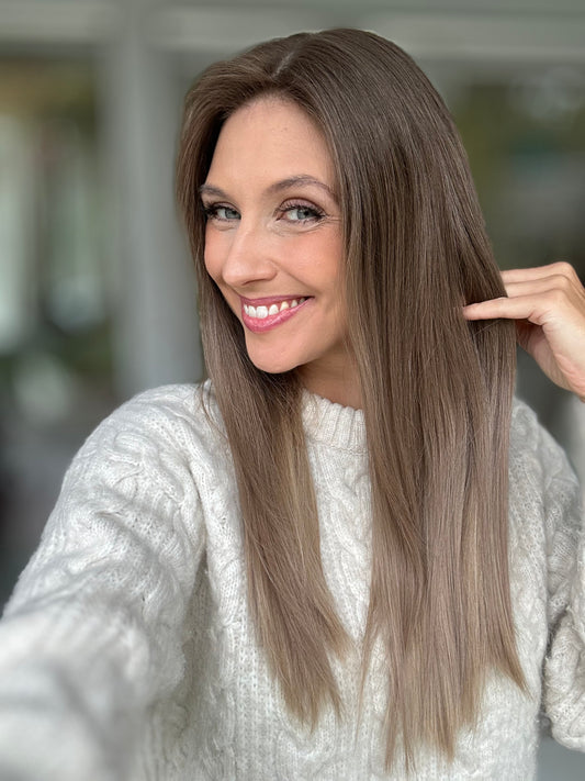 Hochwertige Echthaar-Topper mit einer feinen Lace-Front, die eine natürliche Haarlinie schafft. Leicht, atmungsaktiv und ideal für eine nahtlose Integration ins eigene Haar. Perfekt für Volumen und Fülle.