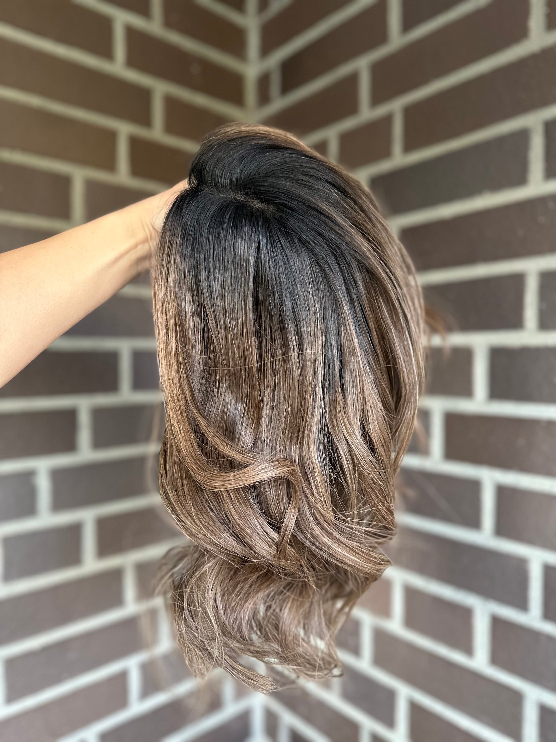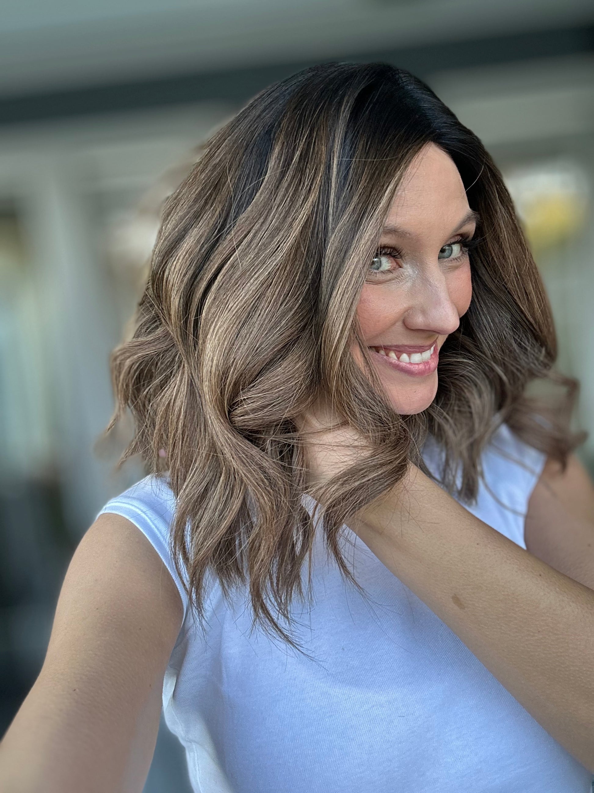 Der schwarze Ansatz bringt klasse während die super soften caramel highlights Frisch und elegant wirken.