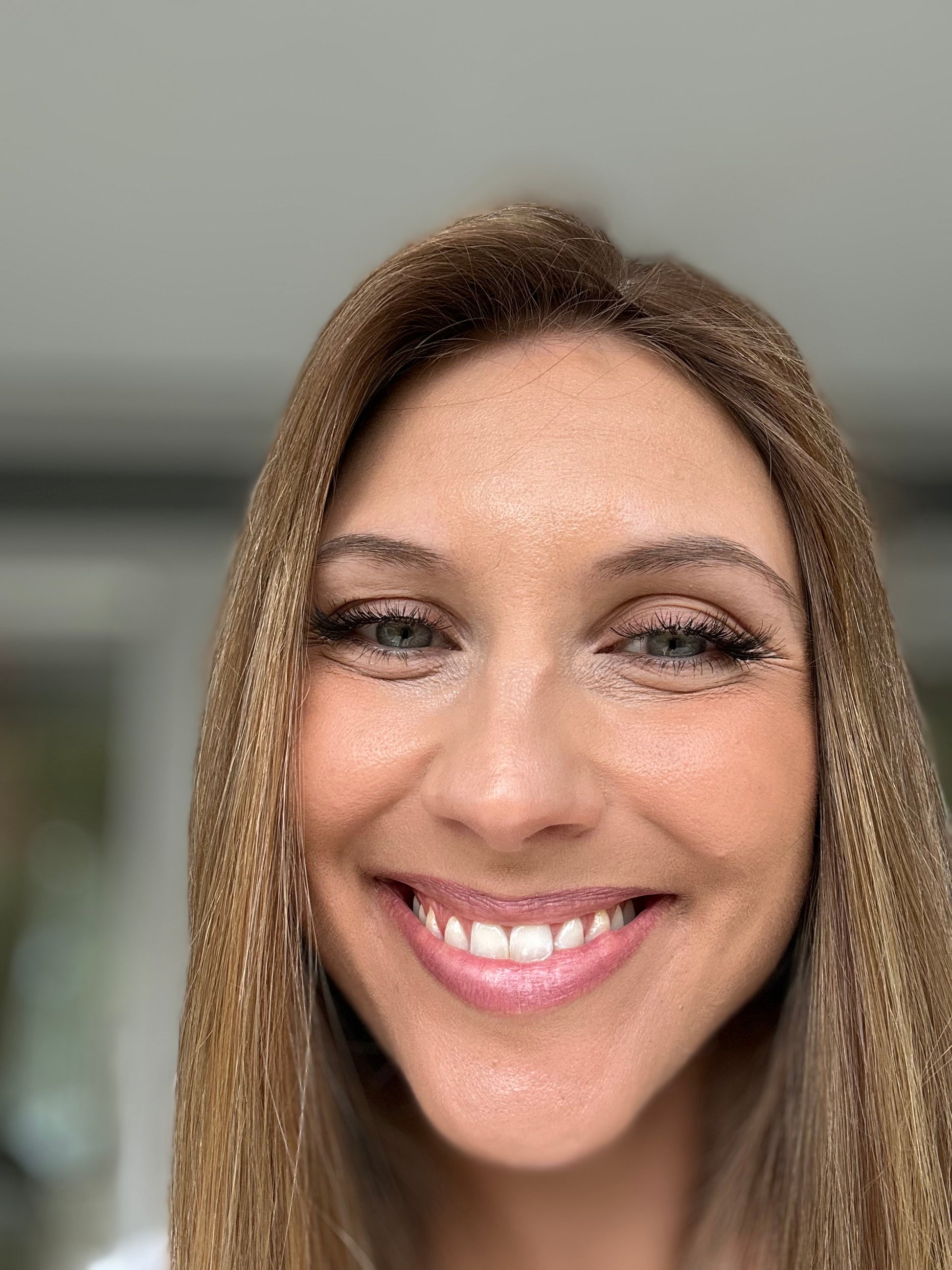 Natürliches unbearbeitetes mittelbraun mit warmen blonden Highlights.