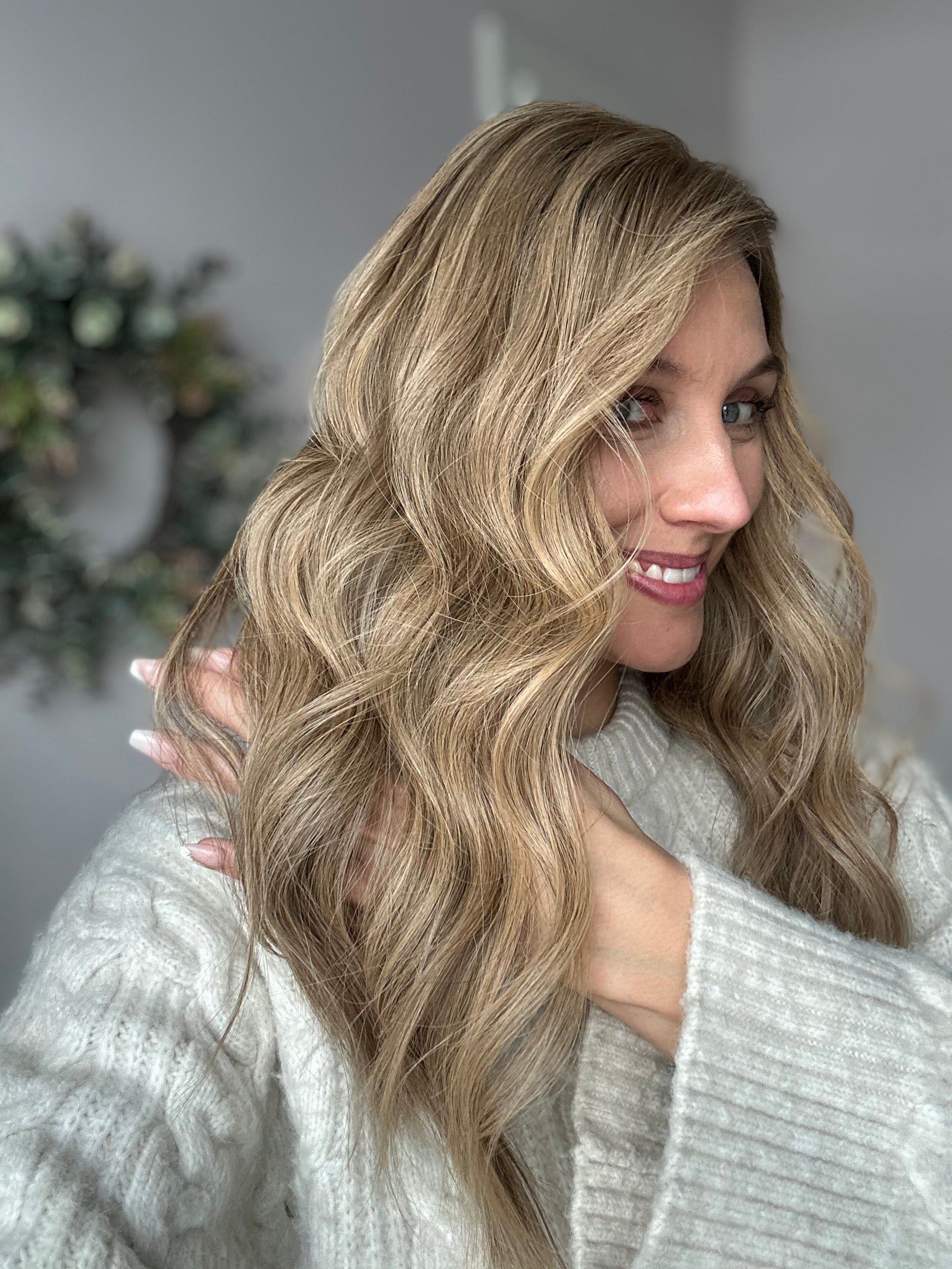 Natürliches Dunkelblond mit sanftem Verlauf in helle, beige-blonde Längen, durchzogen von feinen, mehrdimensionalen Highlights für ein weiches und lebendiges Farbspiel.