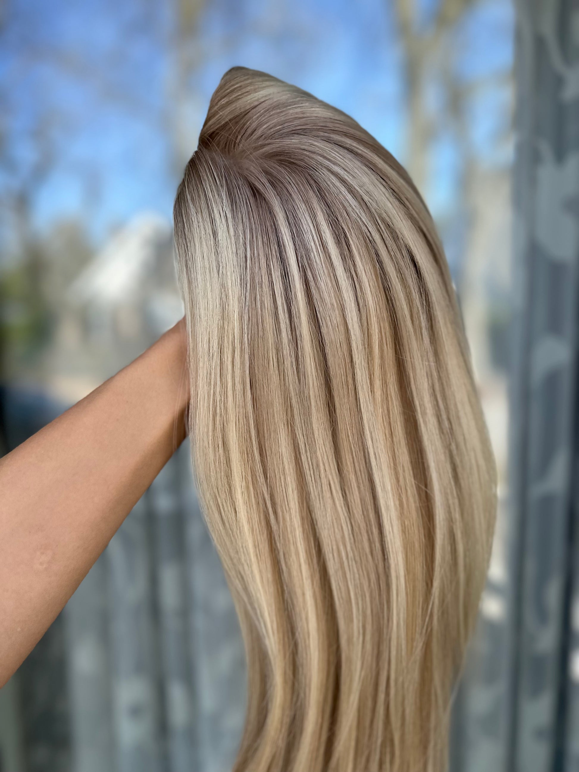 Wir zeigen unsere Silk Top Topper in indirekten Tageslichtaufnahmen, um ihre volle Farbintensität zu offenbaren. Denke jedoch daran, dass die Haarfarben je nach Lichtverhältnissen variieren können – wir möchten dir stets ein authentisches Bild bieten. Jedes HAIR BEAUTYS Haarteil ist einzigartig und von Hand gefertigt, daher fotografieren wir jedes individuelle Haarteil. Das Produkt auf dem Foto/Video ist genau das, welches du erhältst.