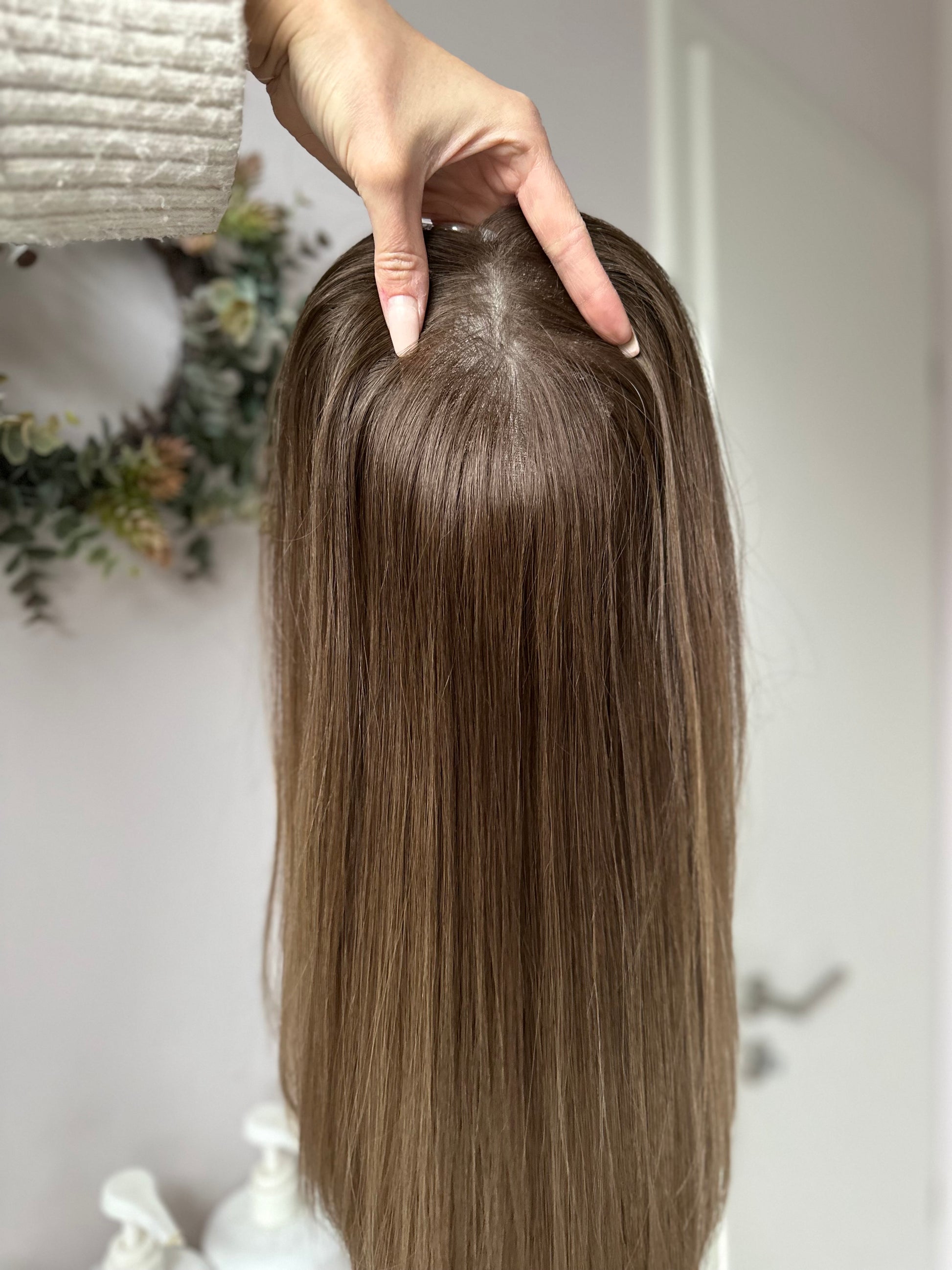 Wir zeigen unsere Lace Topper in indirekten Tageslichtaufnahmen, um ihre volle Farbintensität zu offenbaren. Denke jedoch daran, dass die Haarfarben je nach Lichtverhältnissen variieren können – wir möchten dir stets ein authentisches Bild bieten. Jedes HAIR BEAUTYS Haarteil ist einzigartig und von Hand gefertigt, daher fotografieren wir jedes individuelle Haarteil. Das Produkt auf dem Foto/Video ist genau das, welches du erhältst.