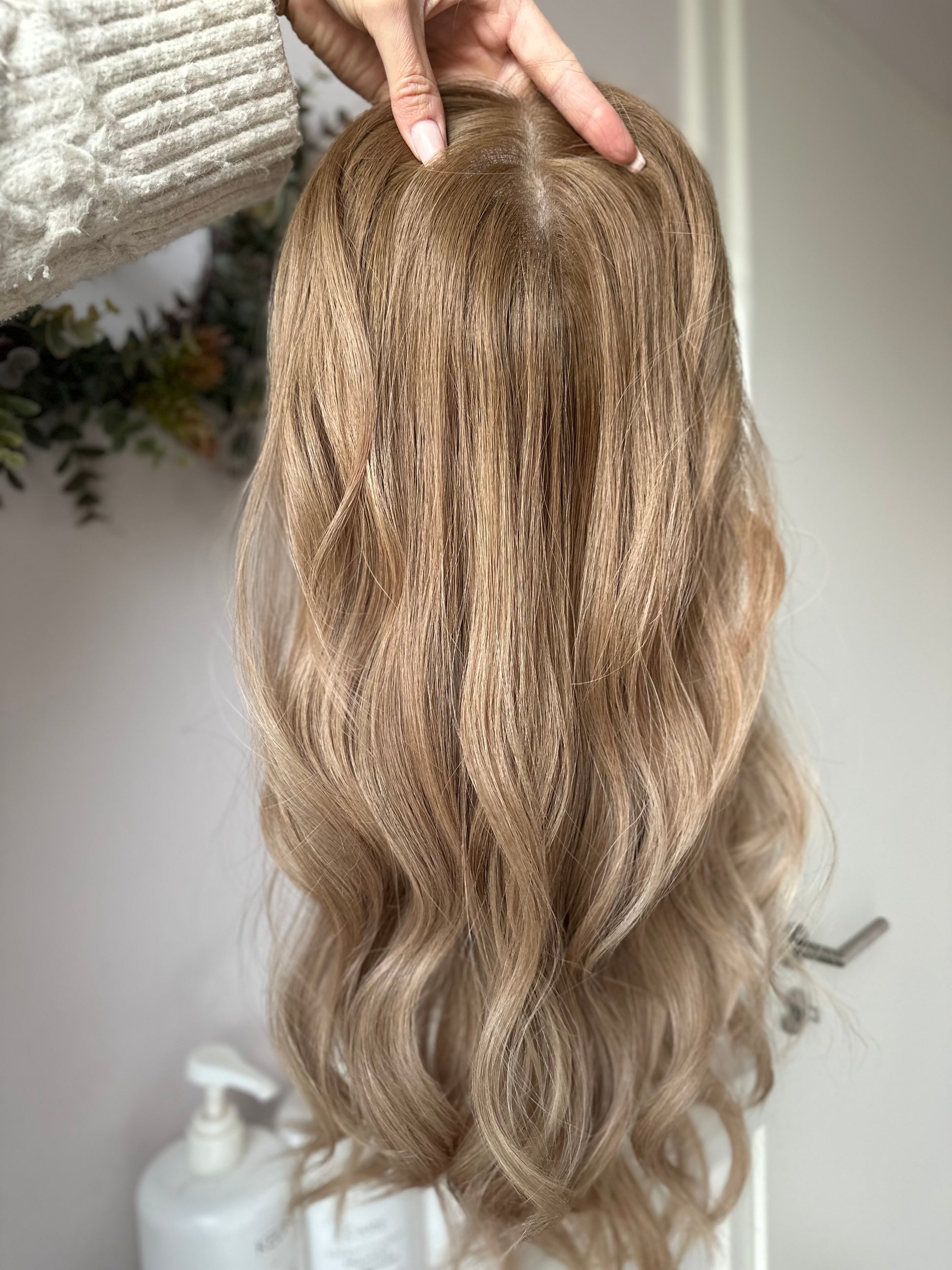 Wir zeigen unsere Lace Topper in indirekten Tageslichtaufnahmen, um ihre volle Farbintensität zu offenbaren. Denke jedoch daran, dass die Haarfarben je nach Lichtverhältnissen variieren können – wir möchten dir stets ein authentisches Bild bieten. Jedes HAIR BEAUTYS Haarteil ist einzigartig und von Hand gefertigt, daher fotografieren wir jedes individuelle Haarteil. Das Produkt auf dem Foto/Video ist genau das, welches du erhältst.