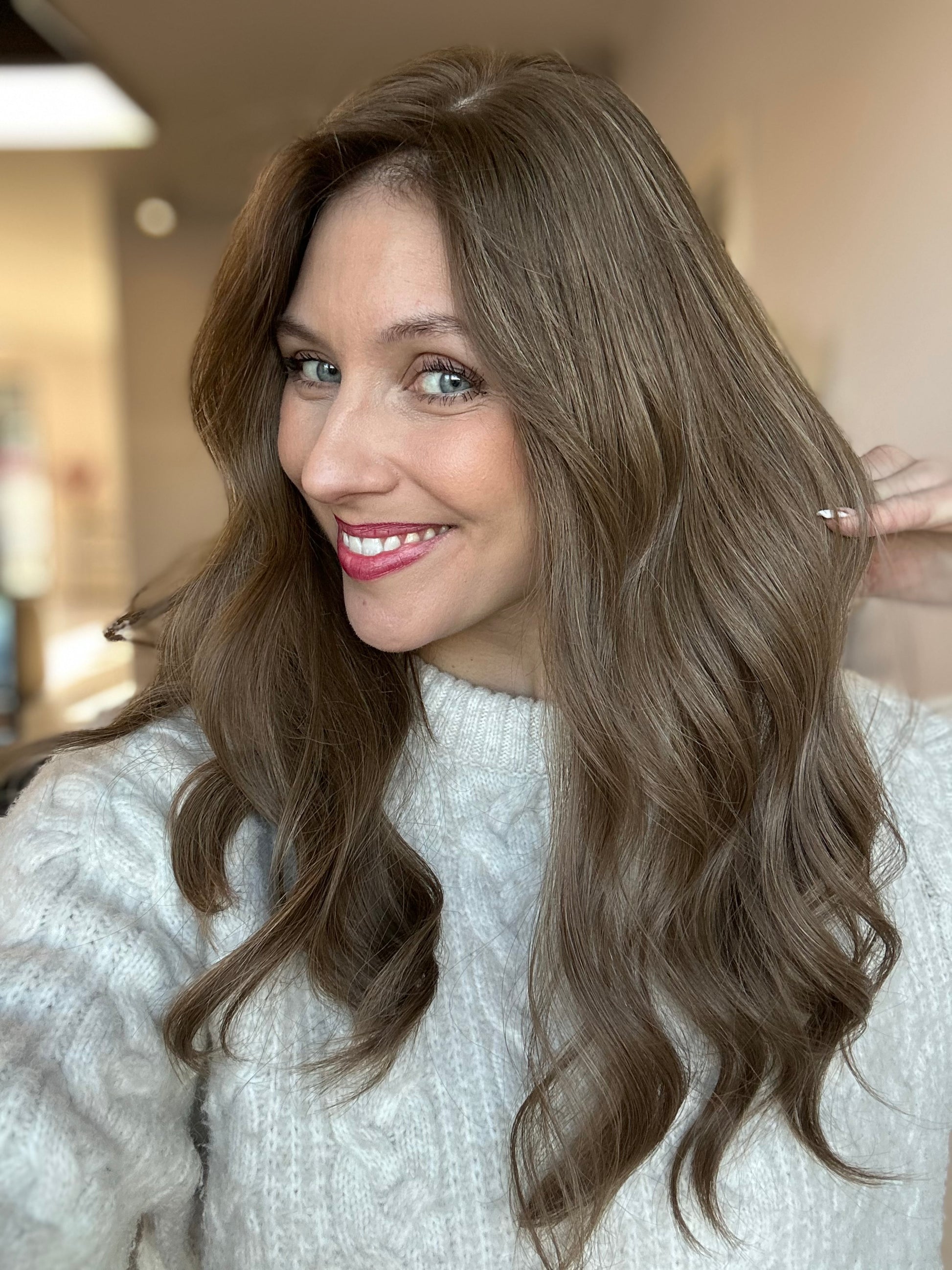 Wir zeigen unsere Lace Topper in indirekten Tageslichtaufnahmen, um ihre volle Farbintensität zu offenbaren. Denke jedoch daran, dass die Haarfarben je nach Lichtverhältnissen variieren können – wir möchten dir stets ein authentisches Bild bieten. Jedes HAIR BEAUTYS Haarteil ist einzigartig und von Hand gefertigt, daher fotografieren wir jedes individuelle Haarteil. Das Produkt auf dem Foto/Video ist genau das, welches du erhältst.