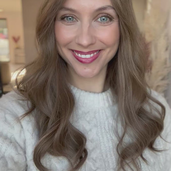 Natürliches Mittelbraun mit kühler, leicht aschiger Nuance und feinen, soften Highlights in Beige-Dunkelblond – lebendig, aber sehr harmonisch verblendet.