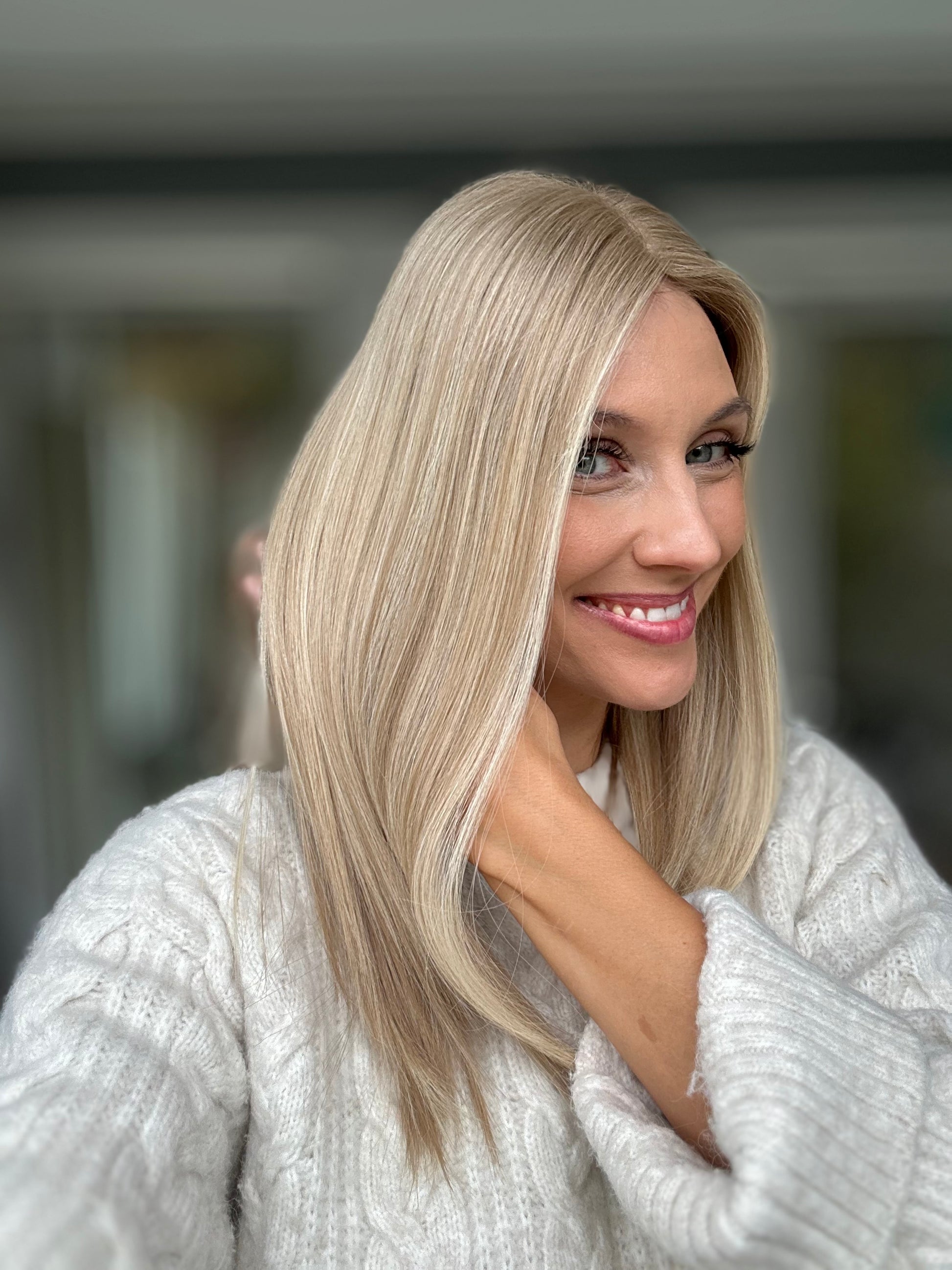 Wir zeigen unsere Lace Topper in indirekten Tageslichtaufnahmen, um ihre volle Farbintensität zu offenbaren. Denke jedoch daran, dass die Haarfarben je nach Lichtverhältnissen variieren können – wir möchten dir stets ein authentisches Bild bieten. Jedes HAIR BEAUTYS Haarteil ist einzigartig und von Hand gefertigt, daher fotografieren wir jedes individuelle Haarteil. Das Produkt auf dem Foto/Video ist genau das, welches du erhältst.