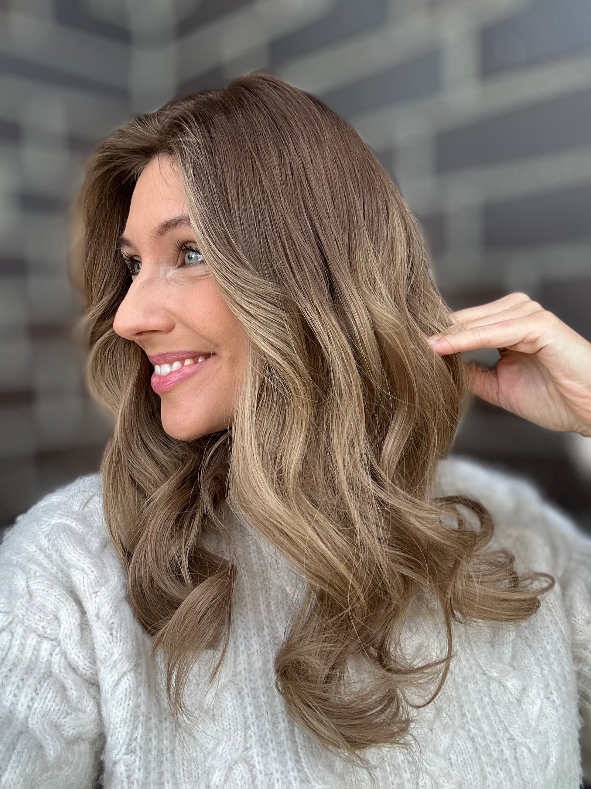 Wunderschöner warmes mittelbraun in dunkelblonde Längen. Ideal für alle, die Ihren Look frisch und lebendig halten möchten ohne Ihr Eigenhaar anzupassen.