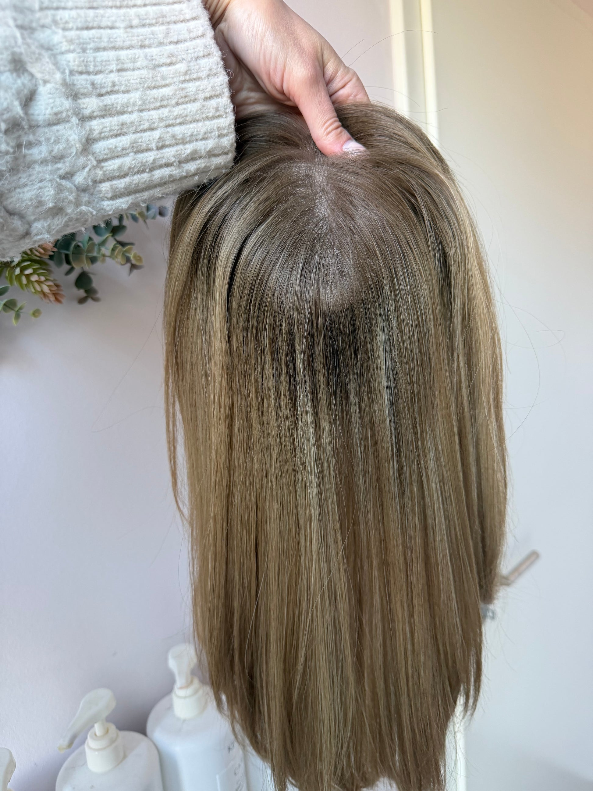 Wir zeigen unsere Lace Topper in indirekten Tageslichtaufnahmen, um ihre volle Farbintensität zu offenbaren. Denke jedoch daran, dass die Haarfarben je nach Lichtverhältnissen variieren können – wir möchten dir stets ein authentisches Bild bieten. Jedes HAIR BEAUTYS Haarteil ist einzigartig und von Hand gefertigt, daher fotografieren wir jedes individuelle Haarteil. Das Produkt auf dem Foto/Video ist genau das, welches du erhältst.