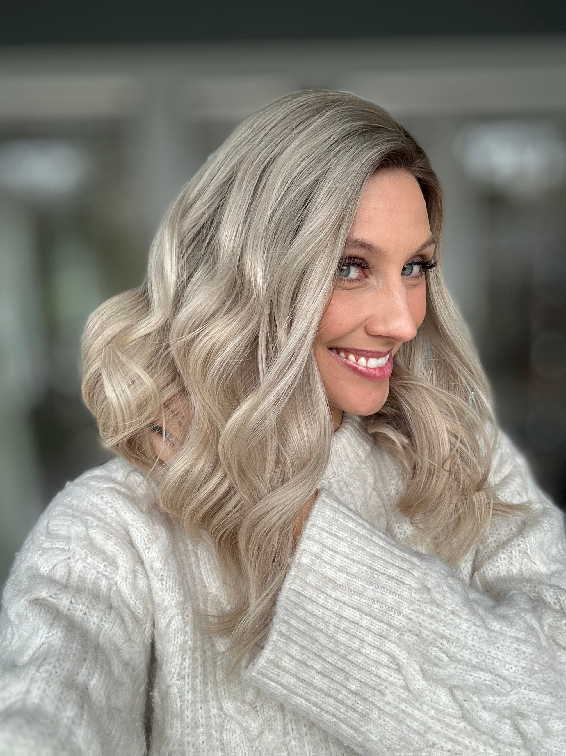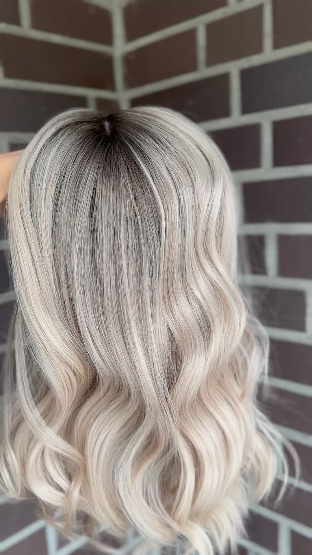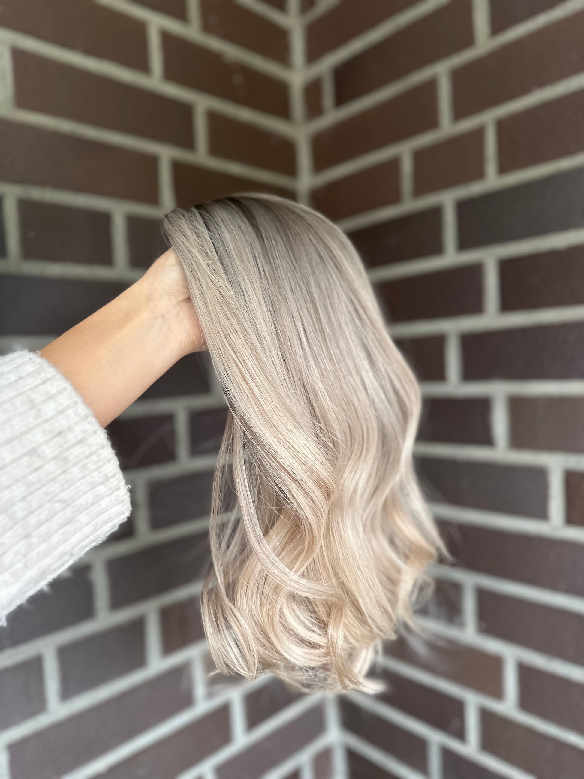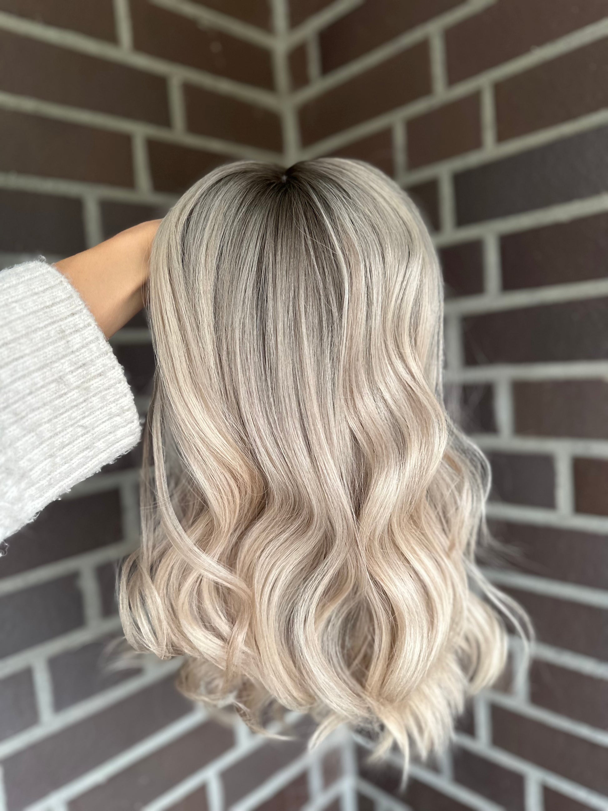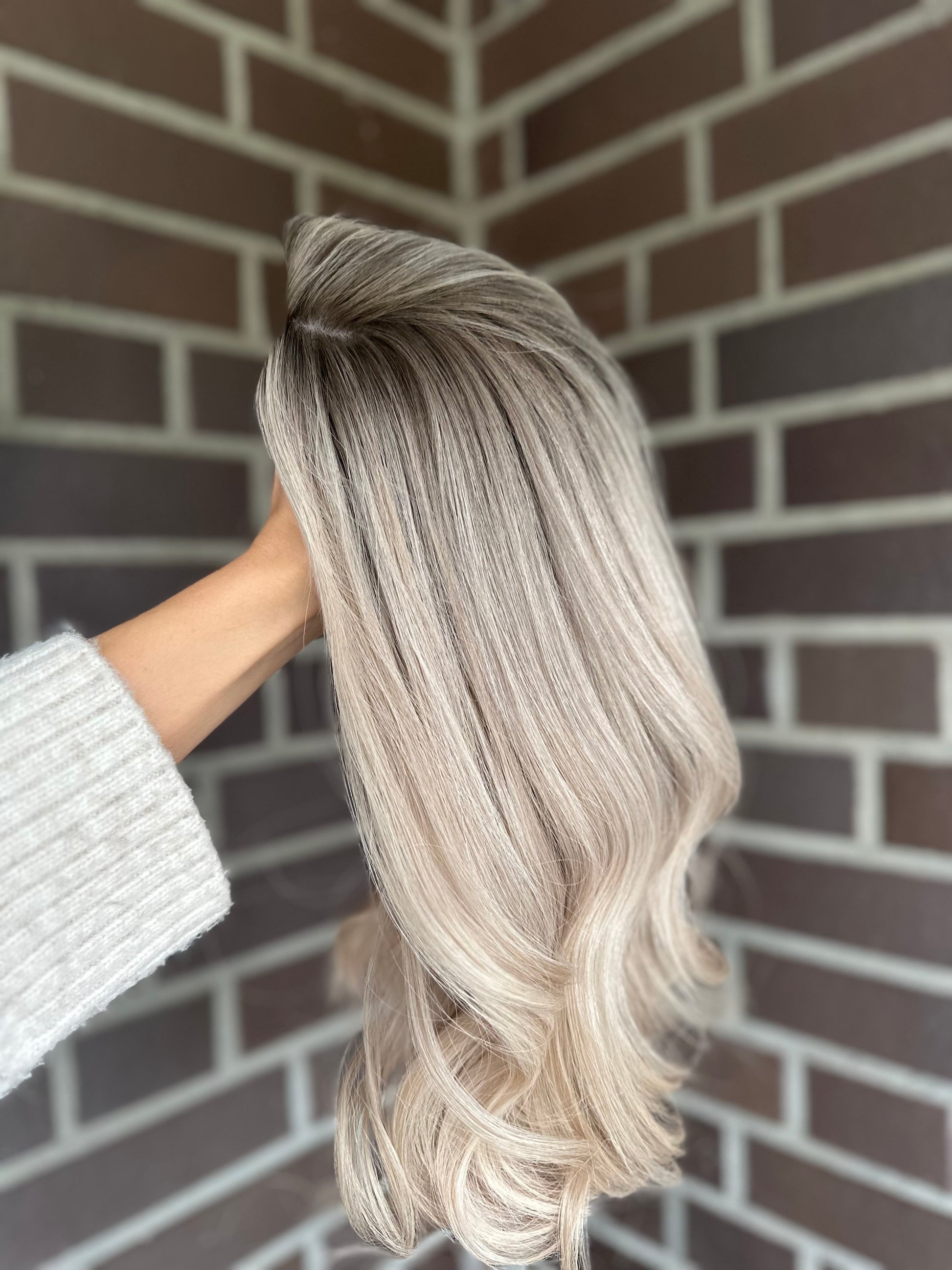 Eine atemberaubende Mischung aus Blond- und minimalsten braun Schattierungen mit aschigem Ansatz. Diese Farbkombination eignet sich perfekt für die viele Hauttöne und lässt das Gesicht strahlend und lebendig wirken.